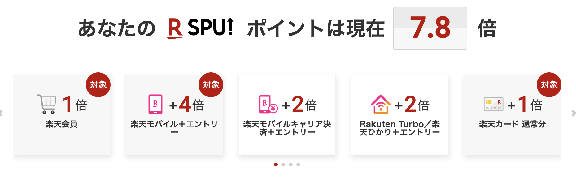SPUとは、楽天のサービスを使えば使うほど、楽天市場でのポイント倍率が上がっていく仕組みのこと。