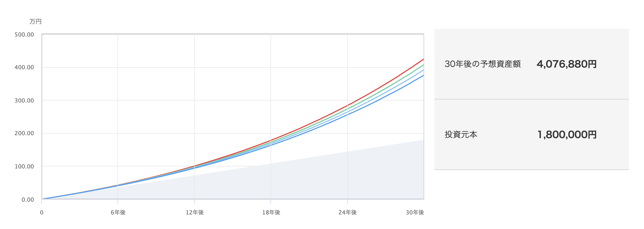 - 30年後 → 約832万円(元本360万円+利益472万円)